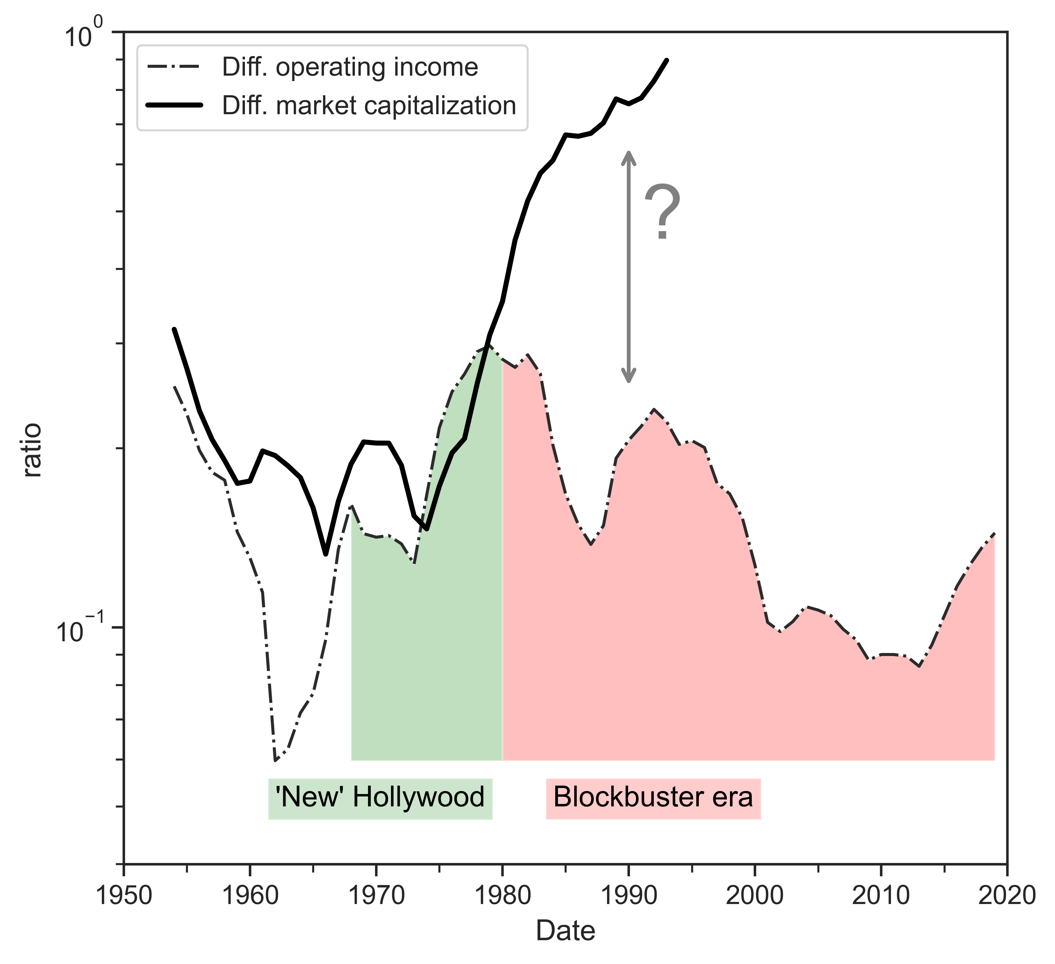 Figure 1: Differential capitalization and differential operating income of major Hollywood distributors